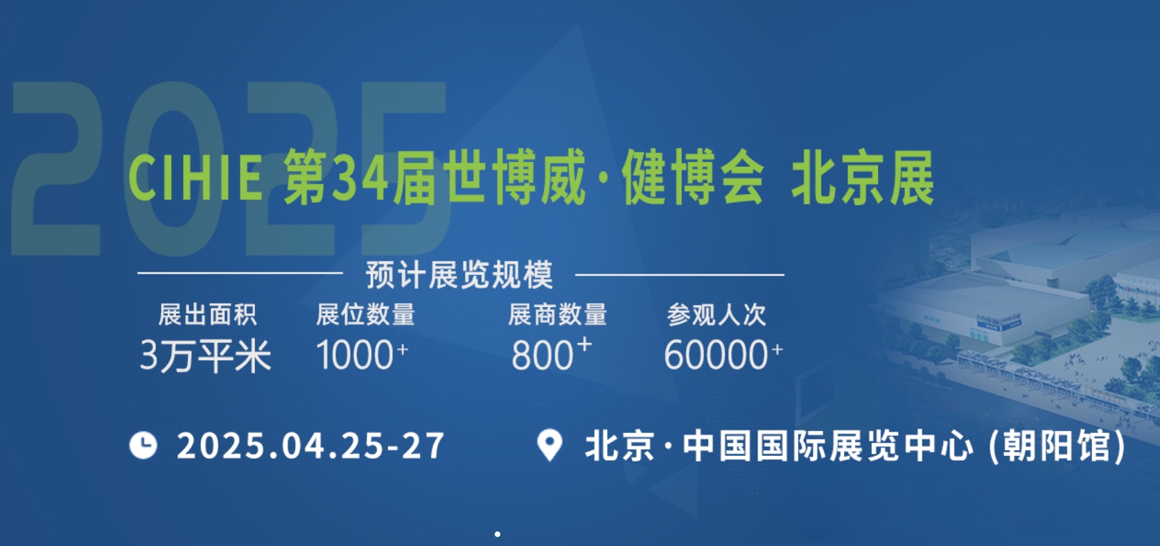 中国国际健康产业博览会简称“CIHIE·健博会”,是经国家商务部批准报备的大健康行业主题展会。CIHIE·健博会始创于2003年“SARS”之后,2004年5月在北京首展举办,截止目前已成功举办了33届。展览累计总规模达110万平方米,展位数近3万+,展商数1.5万+,观众人次150万+;参展客商从单一中国拓展到全球70多个国家和地区;累计促成贸易额超550亿人民币。被业界广泛誉为大健康行业发展的“晴雨表”,备受业内领导、专家、企业、客商的高度认可和一致好评,连续多年被国家商务部评定为“全国重点引导支持展会”品牌项目。