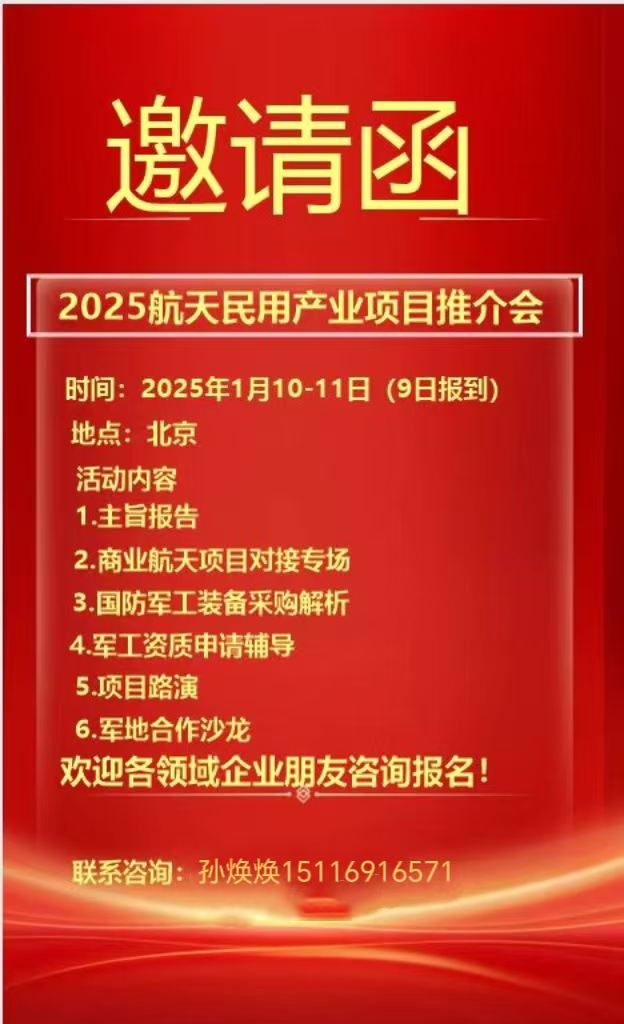 关于召开“2025 航天民用产业项目推介会” 的通知
